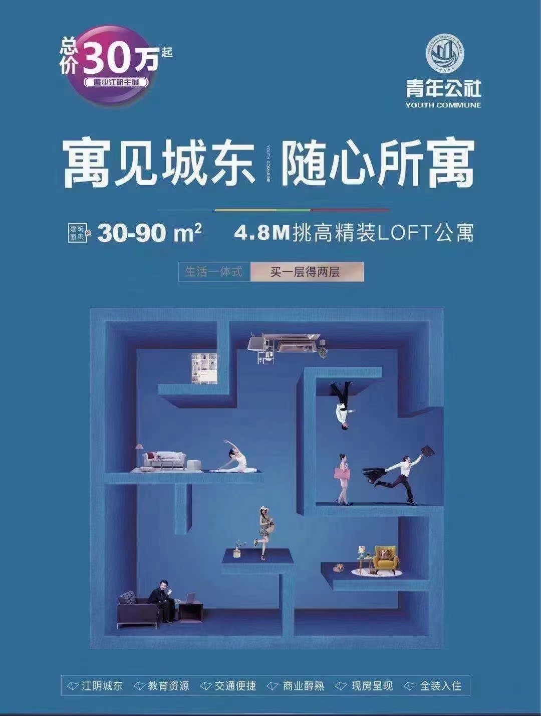 直售工.抵森茂公馆33-80平复式公寓可精装毛坯首付5万起